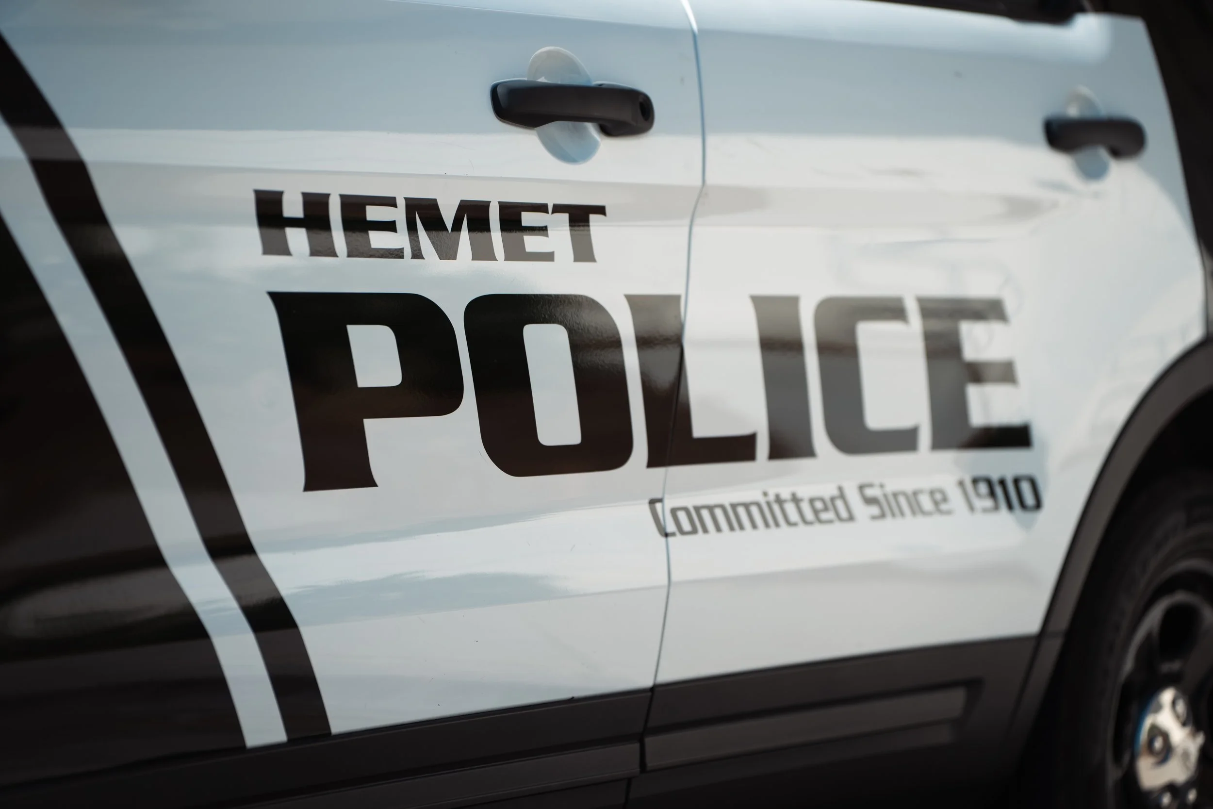 the hemet police department provides law enforcement services to the city of hemet in southern california. in the san jacinto valley area of riverside county, hemet is 86 miles east of los Angeles. within the 29 square miles of hemet is a population of approximately 90,000 people.